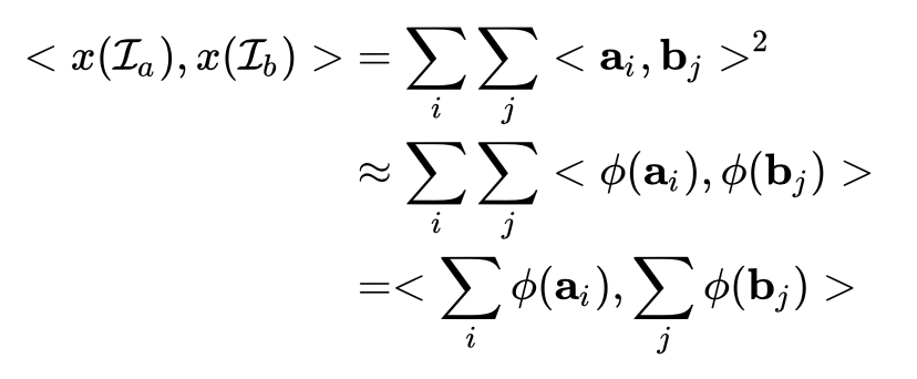 基于这个思想,作者提出了采用了两种方法 Random Maclaurin (RM)和Tensor Sketch (TS)对bilinear pooling进行降维。具体细节如下: