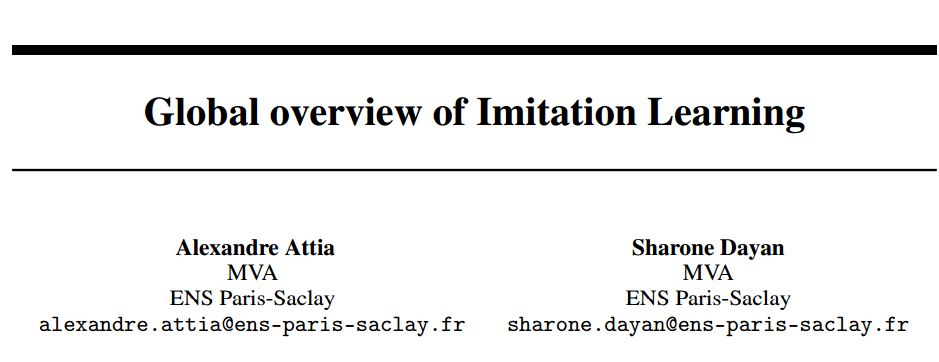 论文:Global overview of Imitation Learning