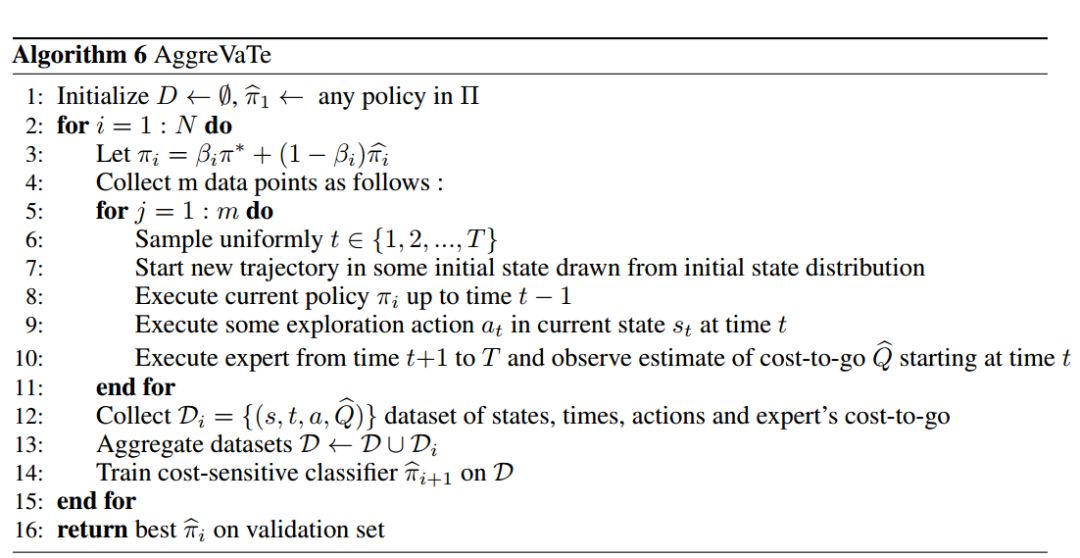 结果在当前策略 π_i 所访问过的状态分布下,得到专家 (s, t, a, Q) 的 cost-to-go 的新示例。