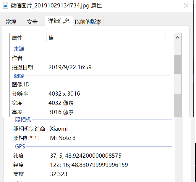 比如我在美国拍的那张照片,我在电脑端右键-属性-详细信息,就会看到以下信息: