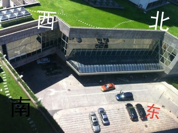 因为我们是北半球,所以影子肯定不会出现在本体的南边,而建筑物面积最大的侧面一般又是向阳的,所以我们可以知道这幅图的东西南北。
