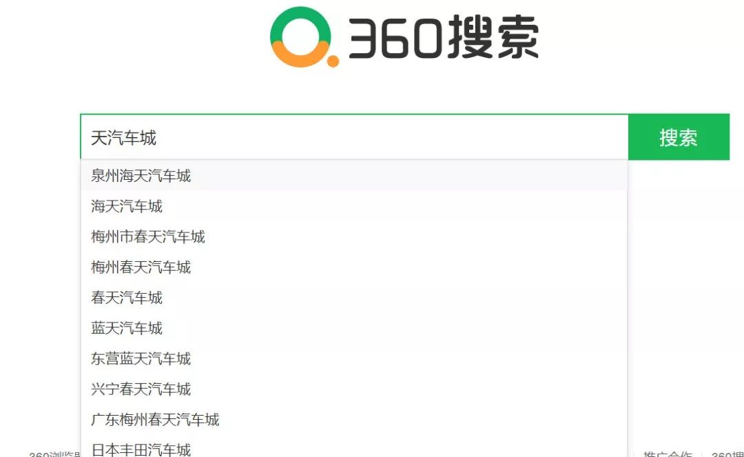 再使用360搜索“天汽车城”,发现第一个是泉州海天汽车城。