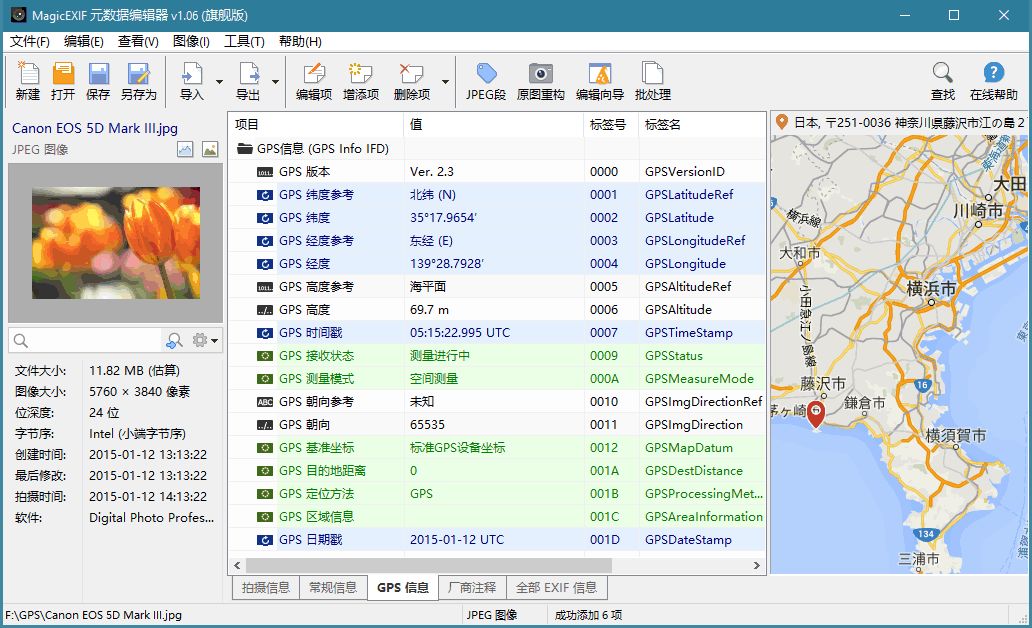 网上有很多地址混淆的软件,可以更改照片中的地址,这样也可以误导那些有心人。比如软件:MagicEXIF 元数据编辑器,可以查看或者手动更改照片中的GPS相关信息。