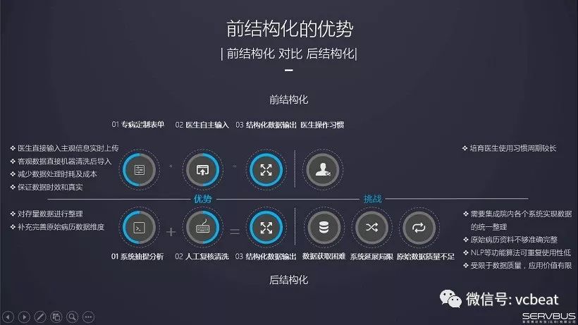 后结构化的优点是作为当下一种主流的数据处理技术,能够帮助医院处理存量数据,从过往保留的海量病历中导出结构化的数据,为医生的临床研究提供帮助。