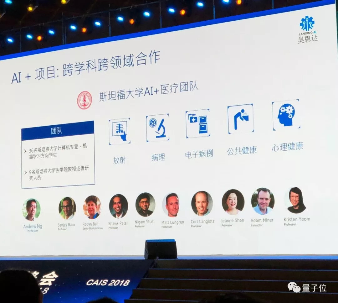 直接做项目总能推动产业的发展,比如在斯坦福我们做过AI+医疗的项目,有36名计算机专业机器学习方向的学生参与,另外还有9名斯坦福医学院的教授或研究生,来完成一些医学图像检测、病理研究、电子病历、公共卫生、心理健康相关的项目。