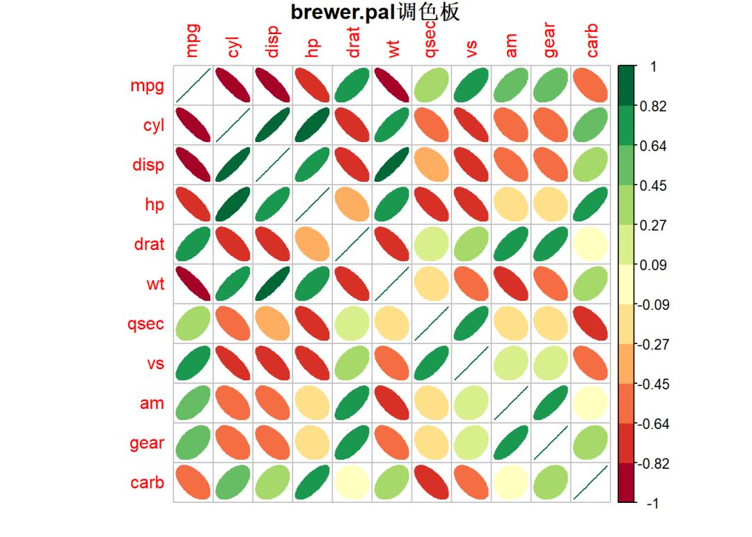 15corrplot(mat_cor, method = "ellipse", col = color_1(200), # 矩阵维度不够大,所以颜色没区别
