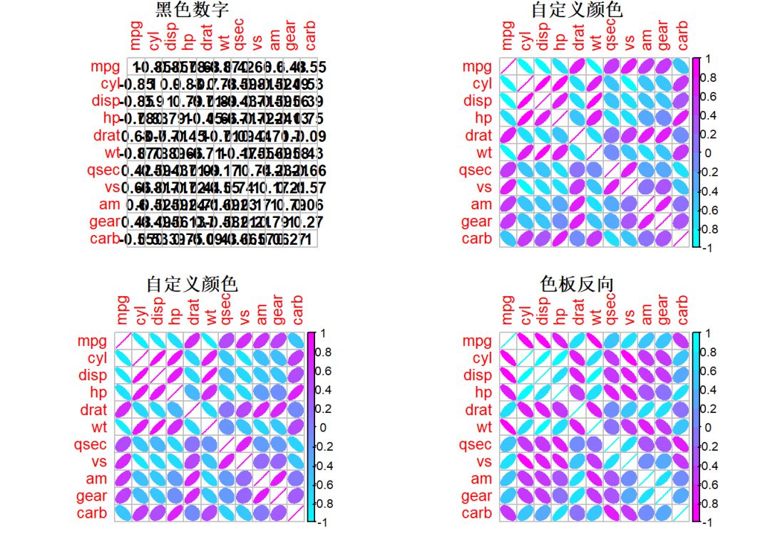is.corr,是否为相关系数绘图,默认为TRUE,FALSE则可将其它数字矩阵进行可视化。