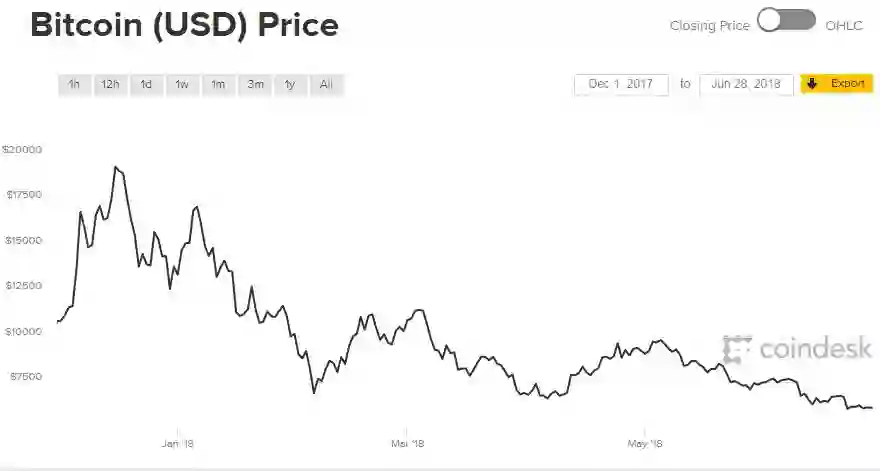 据财经网站Finder.com的数据,在截至6月25日的一周内,该网站所追踪的1586种数字货币中,超过80%出现价格下跌,平均跌幅达19%。其中,价格下跌最多的是比特币,当周跌近500美元;其次是比特币现金,下跌142美元。而价格涨幅最大的数字货币为以太坊的新分支以太经典(ETC),价格上涨1.3美元。