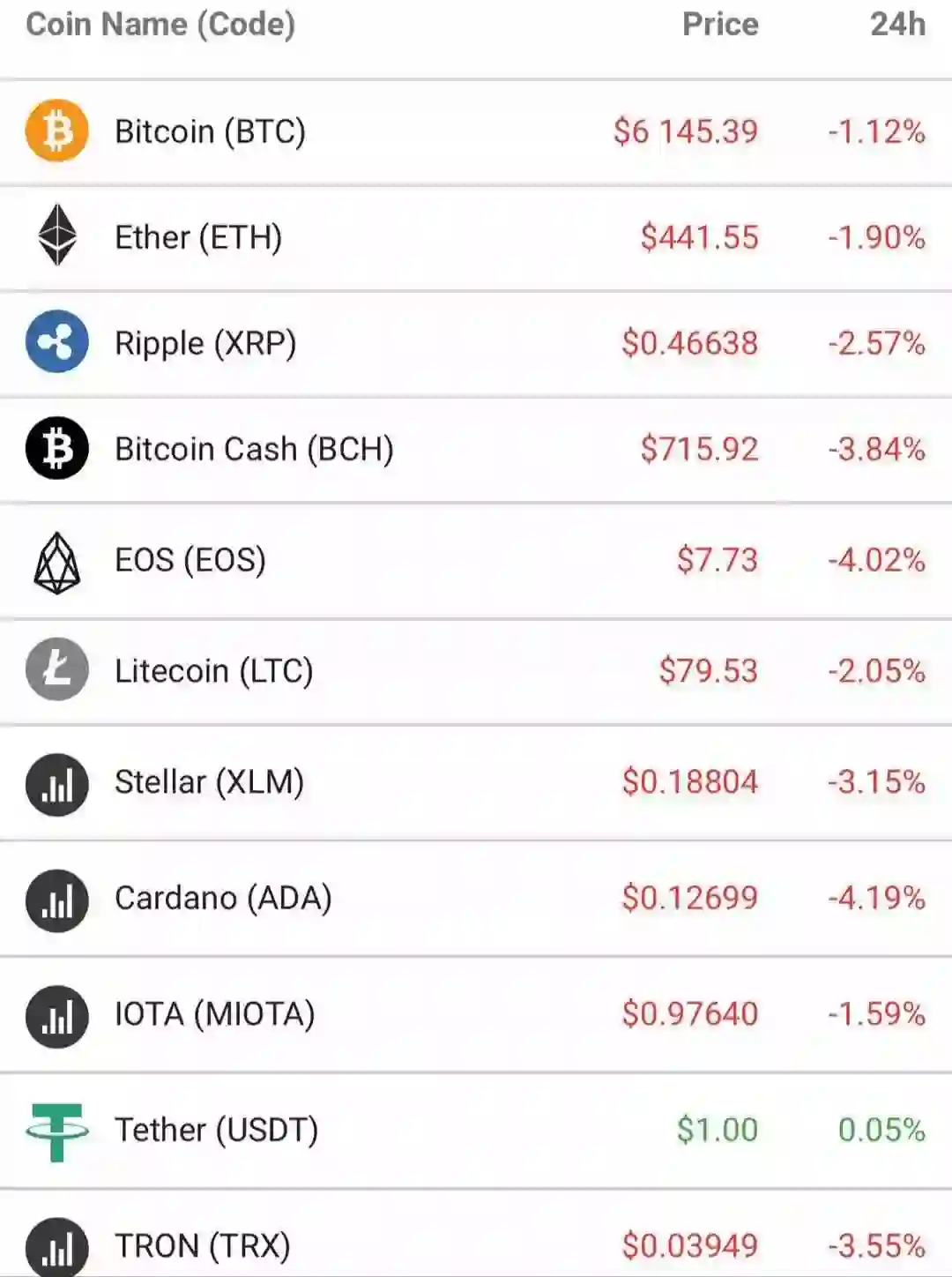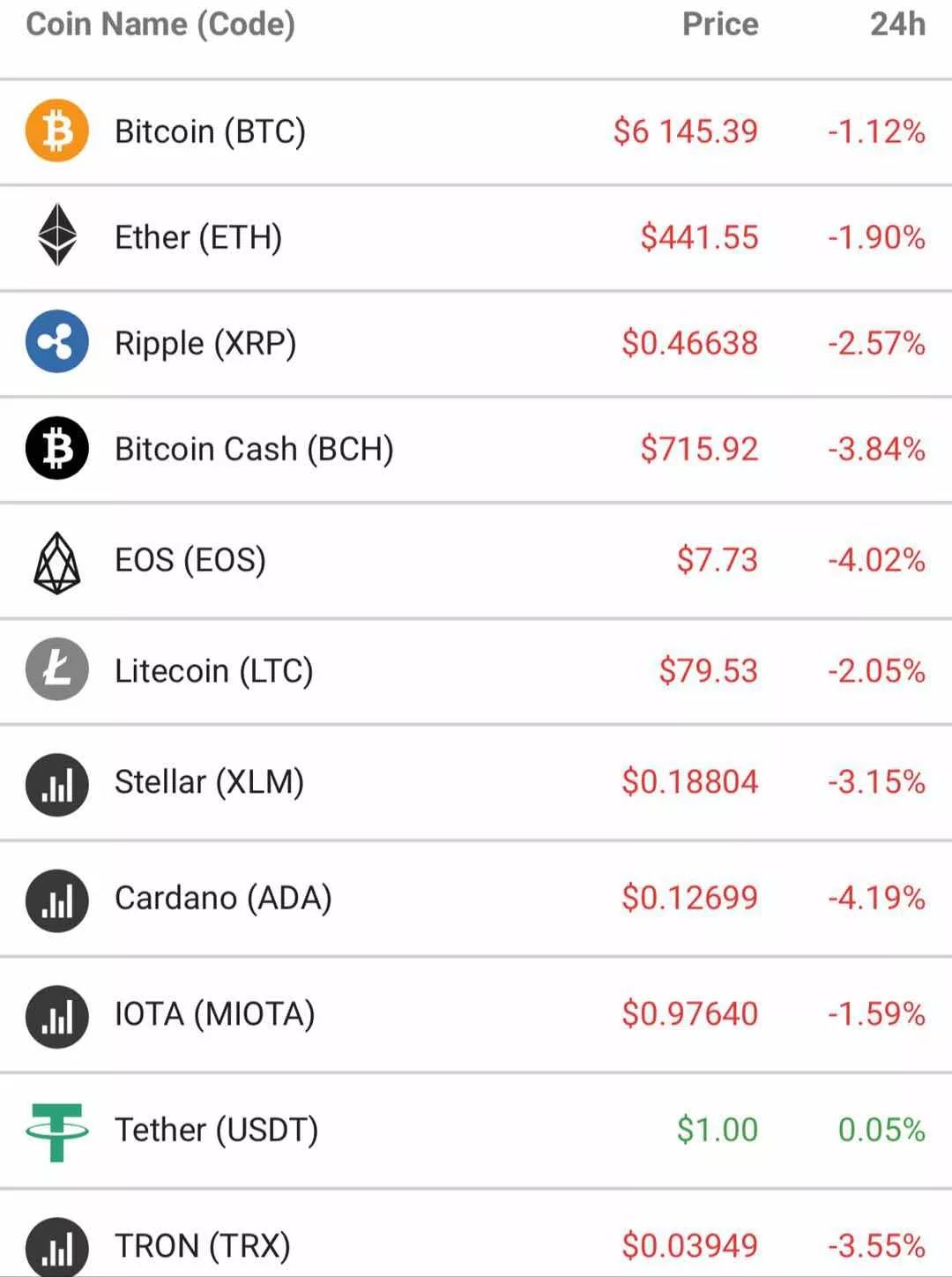 6月27日,数字货币市场普跌,几乎回吐前一日涨幅。比特币价格回落至6100美元以下水平,24小时内跌近3%;以太币、瑞波币、莱特币及比特币现金均跌超5%。截至28日18:00,一枚比特币的价格报6099美元。