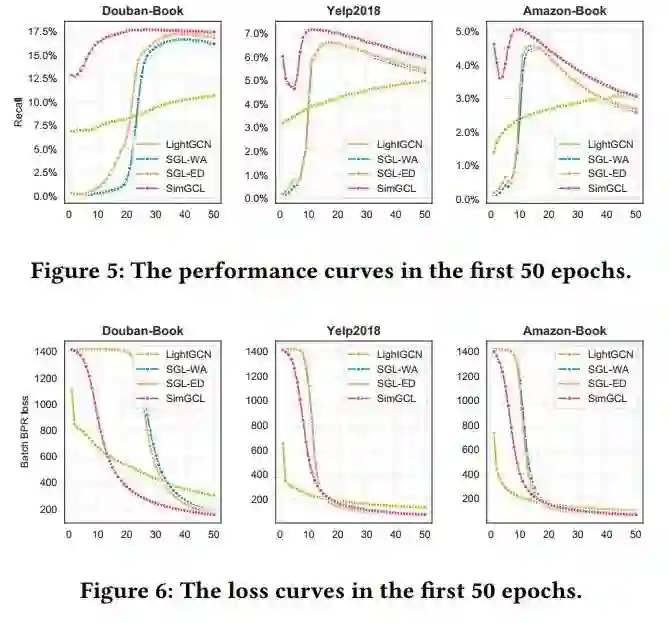 由以上实验可知,SimGCL在多方面具有良好的性能,可以作为SGL的理想替代模型。