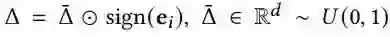对于给定的节点表征e_i, SimGCL通过向表征添加均匀噪声的方法实现数据增强。噪声向量delta满足以下两个约束。
