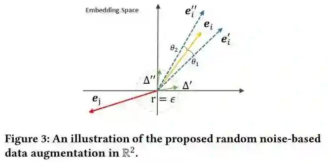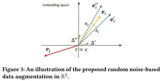 第一个约束控制了噪声的粒度,其等价于以epsilon为半径的超球面上的向量。半径越小,噪声的粒度越小。第二个约束是的噪声向量和原始表征位于同一超象限,以避免添加噪声造成过大的语义偏离。通过添加噪声,可以看作是使得原始表征向量在空间上旋转了两个小的角度,当旋转角度较小时,既保留了大部分原始信息,又带来了语义上的不同 (见图3)。