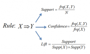 图5:关联规则X> Y的支持度、置信度和lift公式。