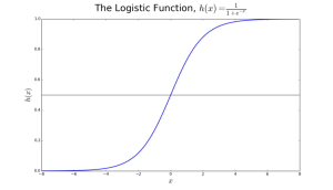 在Logistic回归中,输出是默认类的概率的形式(与直接生成输出的线性回归不同)。因为这是一个概率,输出在0-1的范围内。使用逻辑函数h(x)= 1/(1 + e ^ -x)通过log变换x值来生成输出(y值)。然后应用阈值将该概率强制为二进制分类。