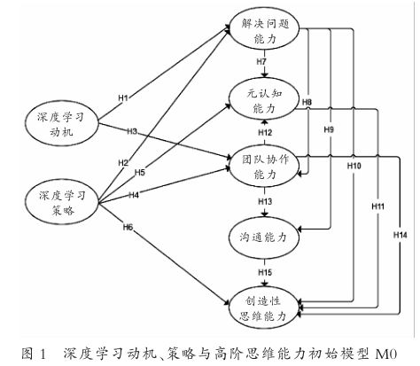 基于以上论述,本研究将通过构建深度学习动机、策略与高阶思维能力关系模型,来分析深度学习动机、策略与高阶思维能力之间的关系,主要用于解决以下两个问题: