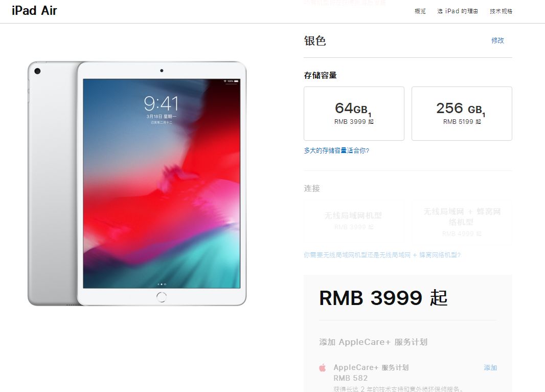 64GB版本3999元,256GB版本5199元。当然,加了蜂窝网络是另算了。