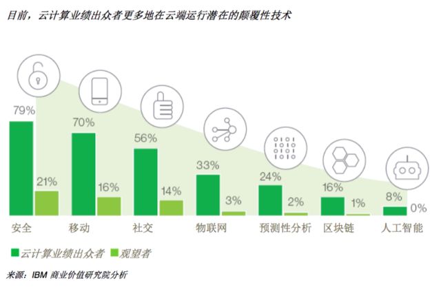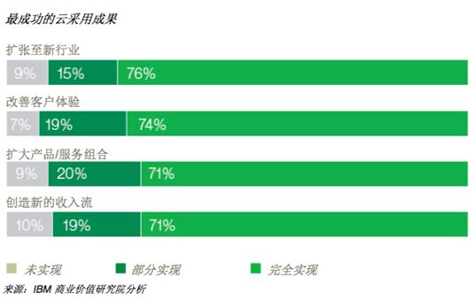IBM商业价值研究院此前发布过《超越敏捷性:云计算如何推动企业创新》报告,数据表明超过 70% 的企业通过重新定义客户关系、开发支持云的产品和服务以及拓展到新的行业和地区,利用云计算创造了新的收入流。(如下图)