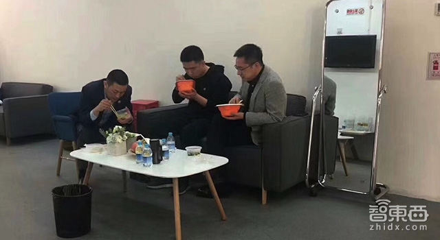 在高潮迭起的掌声与喝彩声结束后,李斌和蔚来汽车总裁秦力洪、蔚来汽车的投资人李想一起在会场的一个小房间里吃起了盒饭。