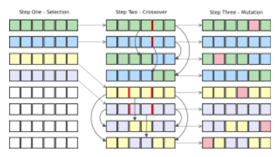 遗传算法在连续的一代代个体之间采取适者生存的进化方法,以期解决搜索问题。每一代包含一群模拟 DNA 染色体的字符串。群体中的每个个体表征搜索空间中的一点,因此每个都是可能的候选方案。为了提升方案数量,我们使个体经历一次进化过程。