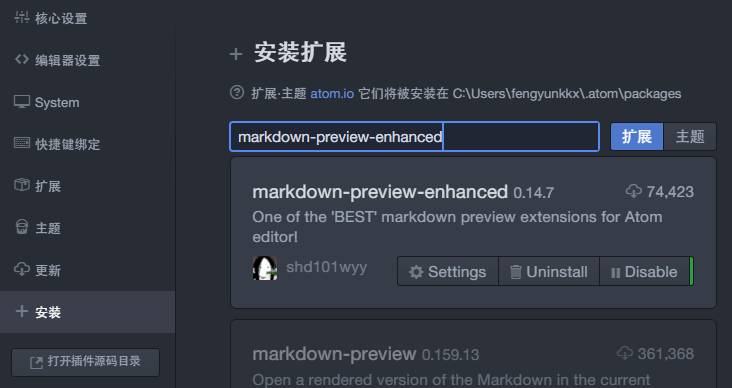 一次偶然的机会,我发现 Atom 的 Markdown 方面的插件已经非 常成熟,安装也相对简单。再加上 Atom 本身的灵活性很强,非常适合定制出一款适合自己的 Markdown 编辑器。