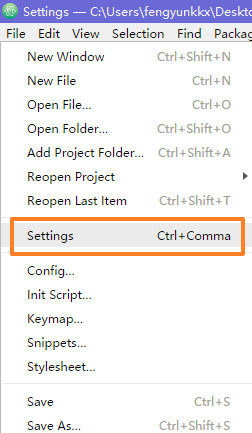 在 File 中找到 Settings,进入设置页面。