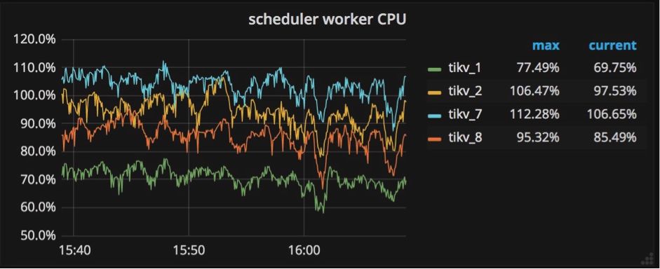 如果看到所有工作线程的 CPU 使用量总和超过 scheduler-worker-pool-size * 80% 时,就需要通过增加调度工作线程的数理来提高性能。