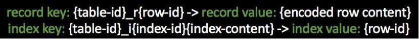 与其他数据库系统不同,TiDB 只存储键值对,以提供无限的水平可伸缩性以及强大的一致性。那么要如何实现诸如数据库、表和索引等高层概念呢?在 TiDB 中,每个表都有一个关联的全局唯一编号,被称为 “table-id”。特定表中的所有数据(包括记录和索引)的键都是以 8 字节的 table-id 开头的。每个索引都有一个名为 “index-id” 的表范围的唯一编号。下面展示了记录键和索引键的编码规则。