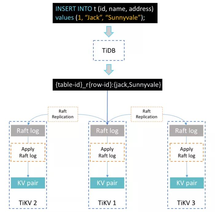 在此过程中,有 3 类关键的过程要处理:转换 SQL 为多个键值对、Region 复制和二阶段提交。接下来让我们深入探讨各细节。
