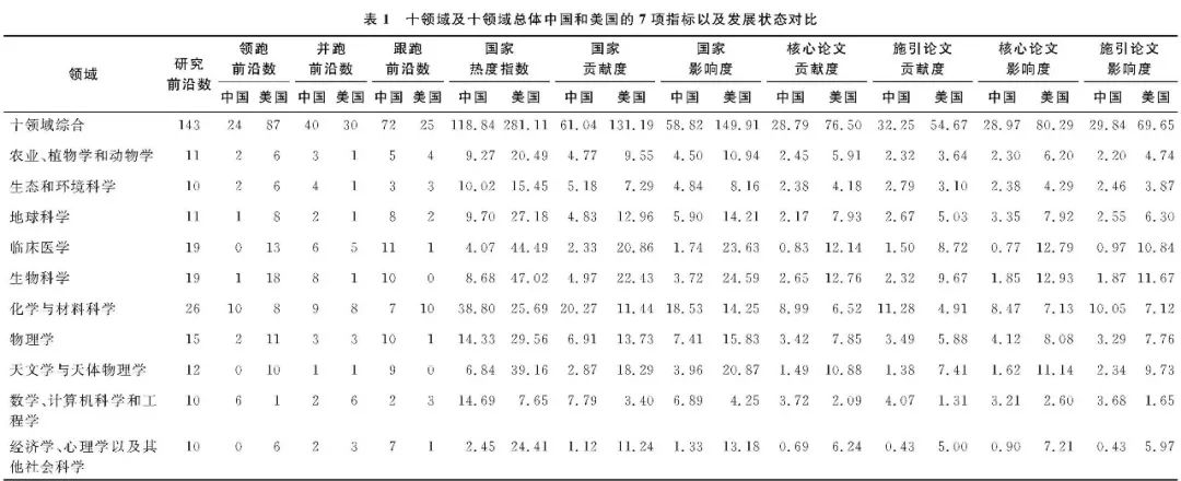 此后,2016年统计分析了180个前沿。美国在152个前沿中有核心论文入选,在106个前沿的核心论文数排名第1。中国则在68个前沿中有核心论文入选,在30个前沿的核心论文数为第1。