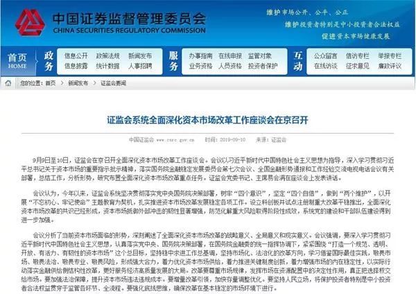 证监会召开全面深化资本市场改革工作座谈会,会议分析了当前资本市场面临的形势,坚持稳中求进工作总基调,坚持市场化、法治化的改革方向,学习借鉴国际最佳实践,敬畏市场、敬畏法治、敬畏专业、敬畏风险,形成强大合力,着力优化资本市场供给,着力推进关键制度创新,着力增强市场的内在稳定性,以实际行动落实金融供给侧结构性改革,更好服务经济高质量发展的大局。改革要尊重市场规律,发挥市场在资源配置中的决定性作用,真正把选择权交给市场。要加强法治保障,提升资本市场违法违规成本。要增量改革引领,加快存量调整优化。要坚持人民立场,将保护投资者特别是中小投资者合法权益贯穿于监管各环节、全流程。要强化底线思维,确保改革在基本稳定的市场环境下进行。