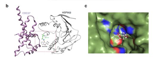 同时研究人员发现KBU2046还可以与HSP90的共分子伴侣CDC37相结合。三者共同组成异质性复合物,进而阻断分子伴侣与其配体蛋白的作用,进而高选择性的阻断肿瘤细胞转移。