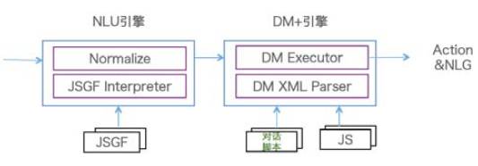 第三,设计了对话面向开发者的方案,称之为 Open Dialog,背后有一个语言理解引擎和一个对话引擎。面向开发者的语言理解引擎是基于规则办法,能够比较好地解决冷启动的问题,开发者只需要写语言理解的 Grammar,基于对话描述语言开发一个对话过程,并且还有对数据的处理操作。这样,一个基本的人机对话就可以完成了。