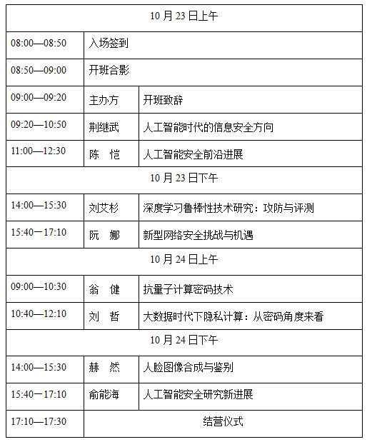 在此背景下,中国图象图形学学会于2021年10月23-24日在北京举办CSIG图像图形学科前沿讲习班(Advanced Lectures on Image and Graphics,简称IGAL),本期讲习班主题为“人工智能与安全”,由数字媒体取证与安全专委会、南京信息工程大学计算机与软件学院、《网信军民融合》期刊承办,中国科学技术大学俞能海教授担任学术主任,邀请人工智能与安全领域的知名专家作特邀报告,使参会学者在了解学科前沿、提高学术水平的同时,增强与国内外顶尖学者的学术交流。