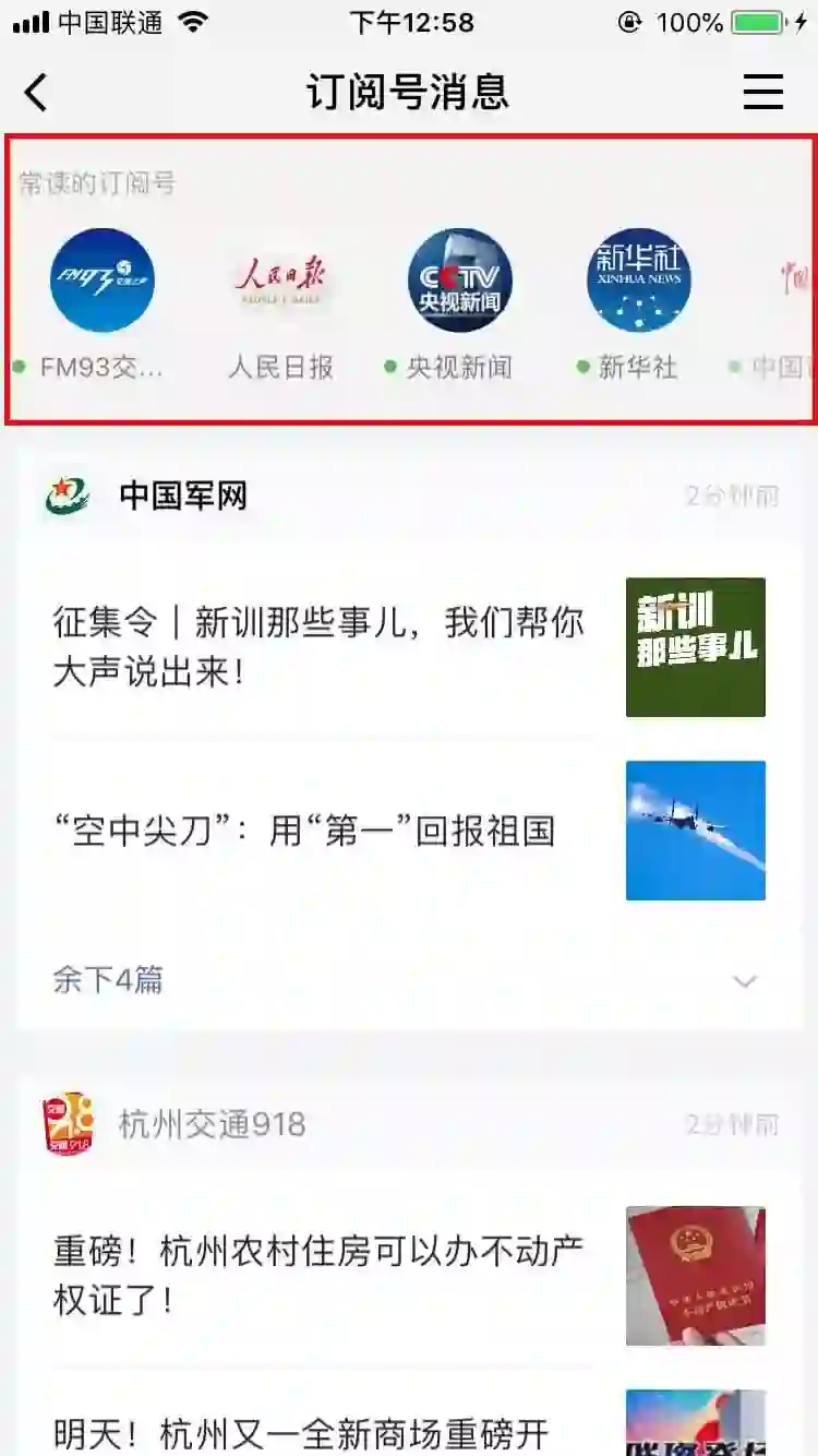 打开“订阅号消息”后,在最上方可以看到“常读的订阅号”入口。