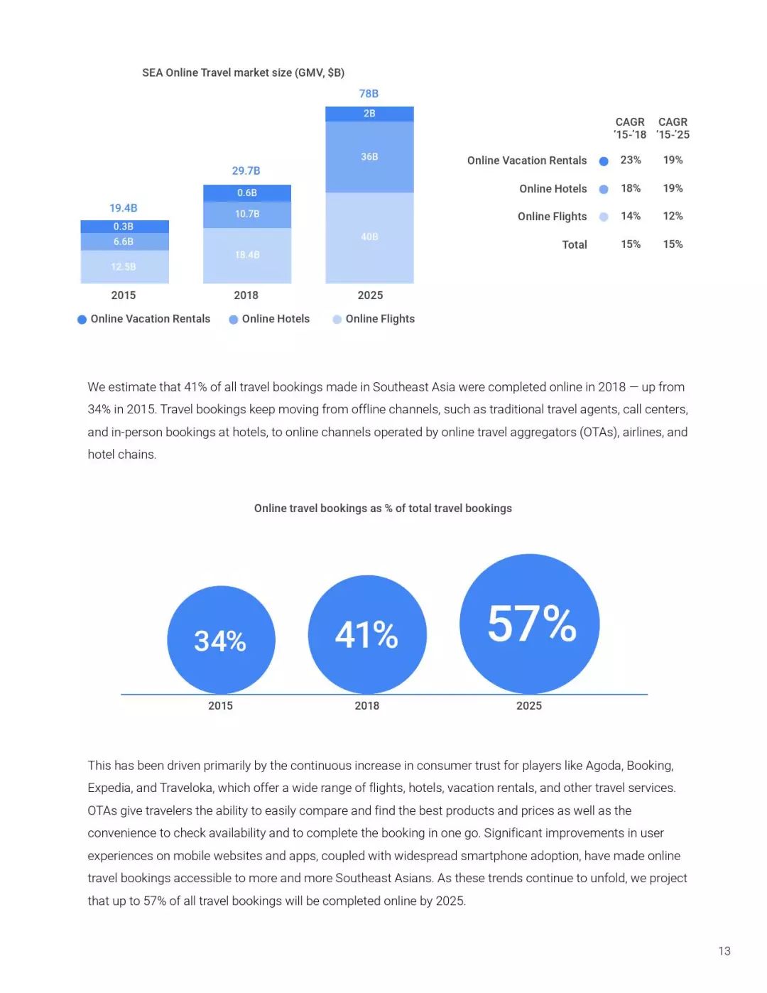 在线旅游是东南亚网络经济中最大也是最成熟的行业,每年订购额接近300亿美元,年增长15%。到2025年该地区在线度假租赁有望增长至20亿美元。