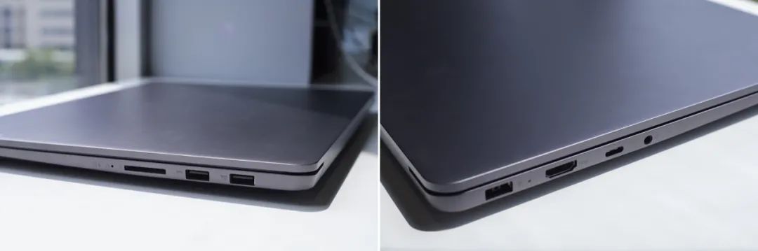 小新 Pro 16 在接口方面考虑得很周全,配备了两个 USB Type-A、一个 USB Type-C、一个 HDMI 2.0 及一个 SD 卡槽。作为修图党,这个 SD 卡槽的存在帮我省去了不少携带读卡器的麻烦,是很实用的配置;其中一个 USB Type-A 还支持关机充电,这也是联想电脑一贯的小特点。