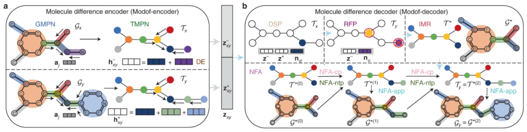 与现有的对整个分子图进行编码和解码的分子优化方法不同,Modof 从一个断开位置优化前后分子之间的差异中学习和编码。为了修改一个分子,Modof 只生成一个片段,该片段通过解码从潜在“差异”空间中抽取的样本来实例化预期的差异。然后,Modof 在断开连接的站点移除原始片段,并在该站点附加生成的片段。