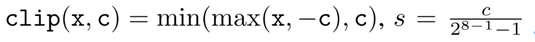 在8bit的场景里,截断函数和量化系数的计算公式如下: