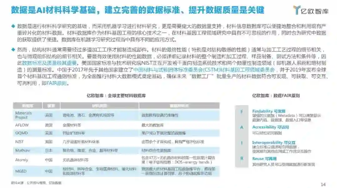 来自于亿欧智库的《中国AI+材料科学产业应用研究报告》,本报告从全球AI+材料科学发展,到产业应用落地作出梳理。解读中国AI+材料科学产业规模、发展趋势,并剖析产业痛点,提出发展建议。旨在推动人工智能驱动新材料发现的产业落地,并为跨界企业、投资人等提供参考。