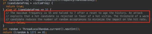 对于发生数据淘汰的时候,会从Probation中进行淘汰。会把这个队列中的数据队头称为受害者,这个队头肯定是最早进入的,按照LRU队列的算法的话那他其实他就应该被淘汰,但是在这里只能叫他受害者,这个队列是缓刑队列,代表马上要给他行刑了。这里会取出队尾叫候选者,也叫攻击者。这里受害者会和攻击者PK决出我们应该被淘汰的。