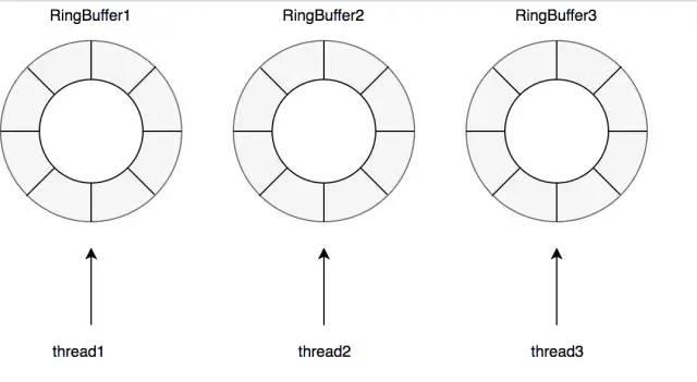 对于读操作比写操作更加频繁,进一步减少竞争,其为每个线程配备了一个RingBuffer: