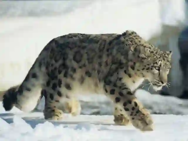 雪豹皮毛的底色为灰白色,体侧布满深色的斑点,在脊背处则是条纹。这一身迷彩本来在雪线附近是极好的保护色,却因为华丽和独特,给雪豹招来了杀身之祸。