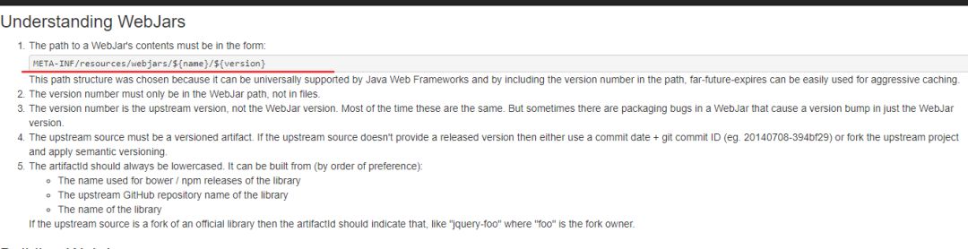 所以可以看出,静态文件存放规则:META-INF/resources/webjars/${name}/${version}。这点官网也有说明的: