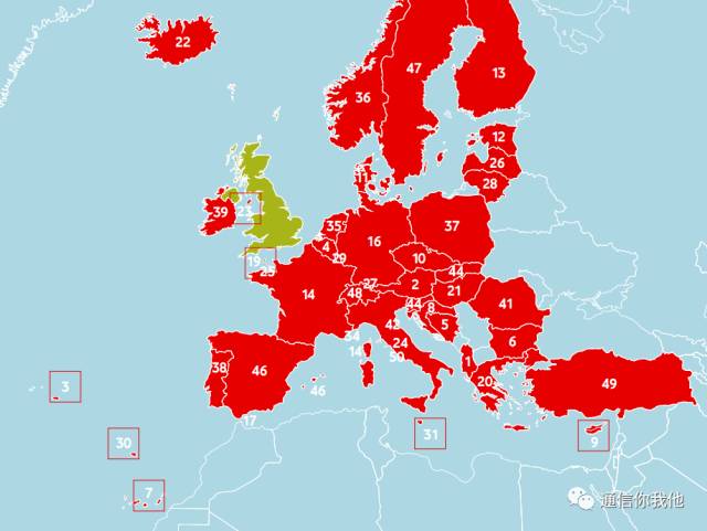 在Vodafone主推的套餐中,最便宜的是Essentials套餐。每月缴纳9.5英镑(约合人民币82元),包含可在全欧洲范围内使用的250MB流量、250分钟通话时长。而最贵的Red Entertainment套餐,每月缴纳40英镑(约合人民币344元),包含40GB流量、无限制使用的通话时长以及专属影音娱乐节目会员等福利。为了更好的表现出Vodafone用户可以漫游的区域,Vodafone公司还在官网上标出了可以漫游使用的50个国家的地理位置。
