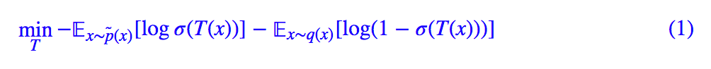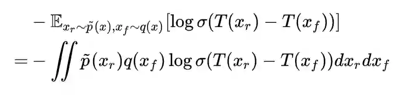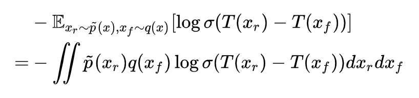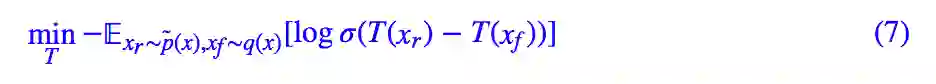 这里,我们先直接给出 RSGAN 的优化目标:固定生成器后,我们来优化判别器 T(x):
