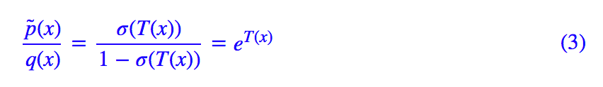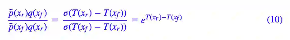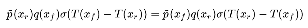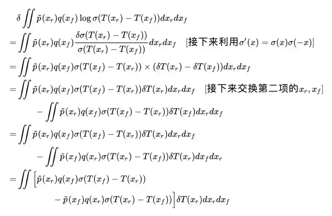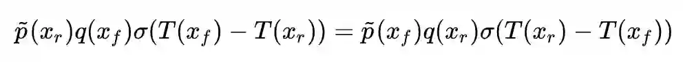 这是什么意思呢?它就是说,假如我从真实样本采样一个 Xr 出来,从伪造样本采样一个 Xf 出来,然后将它们交换一下,把假的当成真,真的当成假,那么还能分辨出来吗?换言之:p̃(Xf)q(Xr) 有大变化吗?