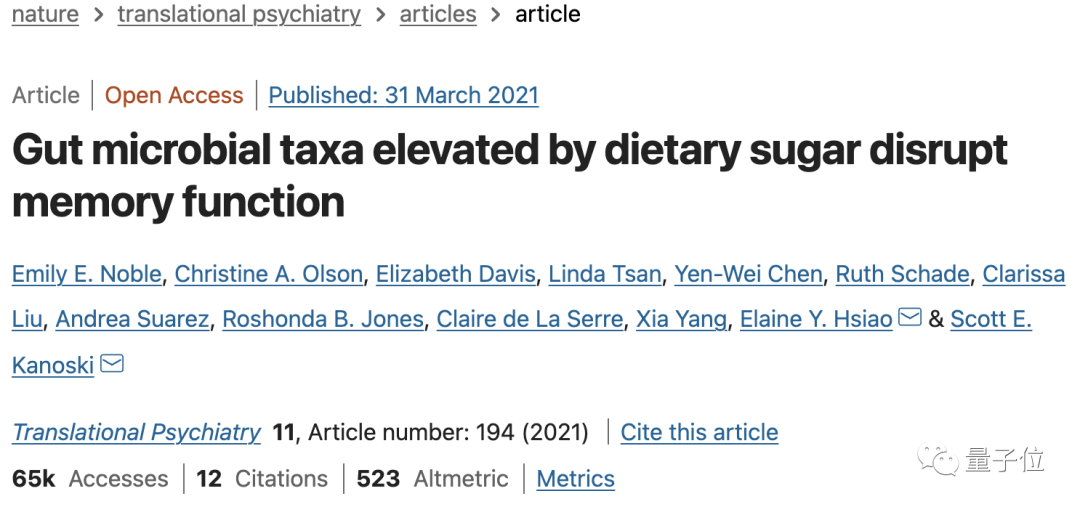 其中,通过对小鼠海马体RNA测序表明,高糖饮食主要会影响与神经递质突出信号传导有关的4种通路:多巴胺能、谷氨酸能、胆碱能和血清素能信号传导通路。