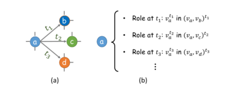 在时间交互网络中,节点 与时序发生包 ,其中节点 在时间戳 在网络中的示例即为上述时序发生包。