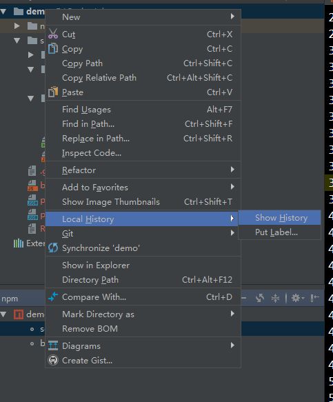 ps:webstorm自身的local history可以看到编译日志(项目运行后存放在webstorm生成的“.idea文件夹”)。右击项目名,就能看到local history选项