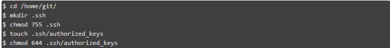收集所有需要登录的用户的公钥,公钥位于id_rsa.pub文件中,把我们的公钥导入到/home/git/.ssh/authorized_keys文件里,一行一个。如果没有该文件创建它: